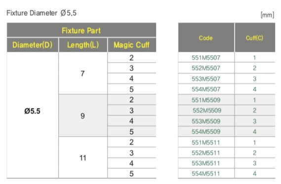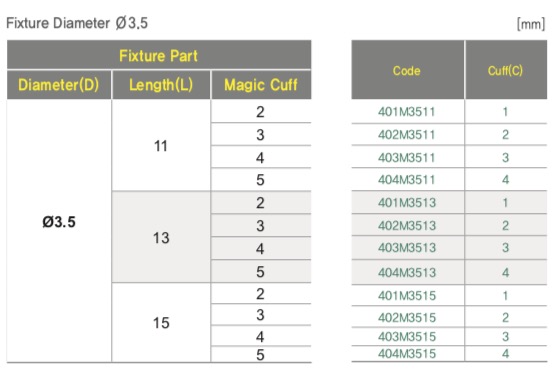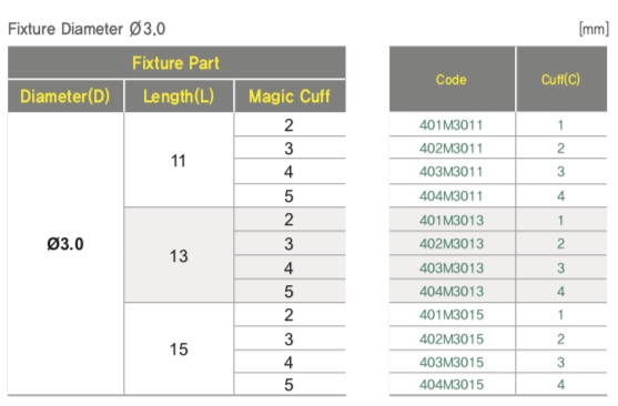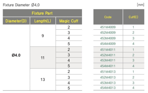 Один и тот же размер импланта (длина × диаметр) выпускается в нескольких вариантах высоты ортопедической части. Последняя цифра в начале кода обозначает номер Cuff (1, 2, 3, 4 — от самого низкого к самому высокому). Уточните у врача, какая высота подходит вашей клинической ситуации.